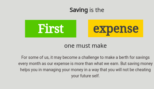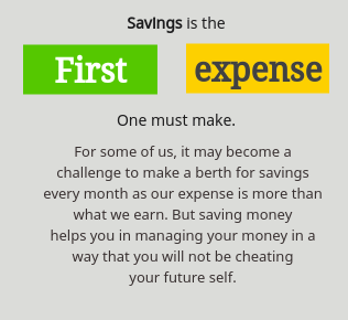 Savings is the first expense that you should make. When you allocate fund for different buckets, the first one should be the SAVING bucket. Teach your kids with the importance of savings. Plan your savings according to your income. Start the habit of saving at the earliest because a mango seed planted today will become mangrove over two decades.